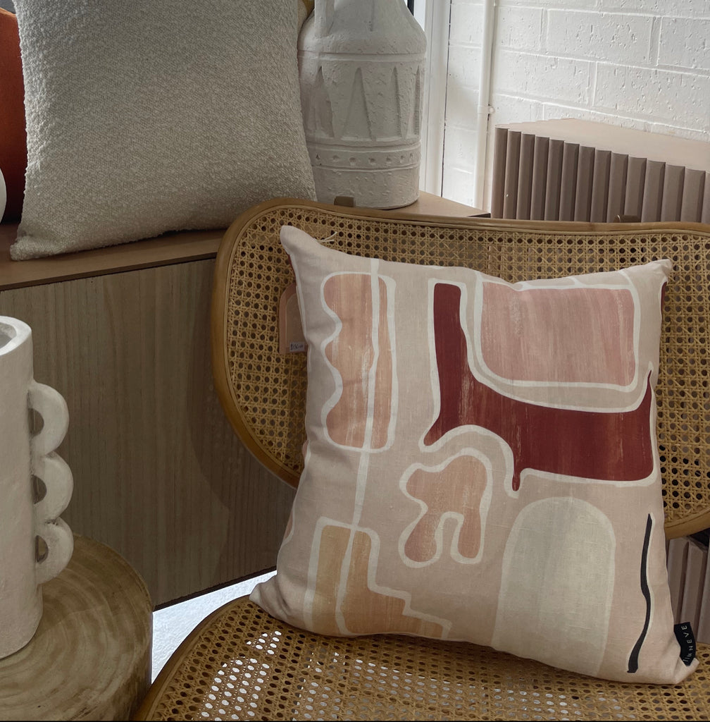 Mixing a stylish palette of warm and earthy clay tones. Each design is executed in a hand-painted style, printed on 100% natural linens. Hand-made in Australia.